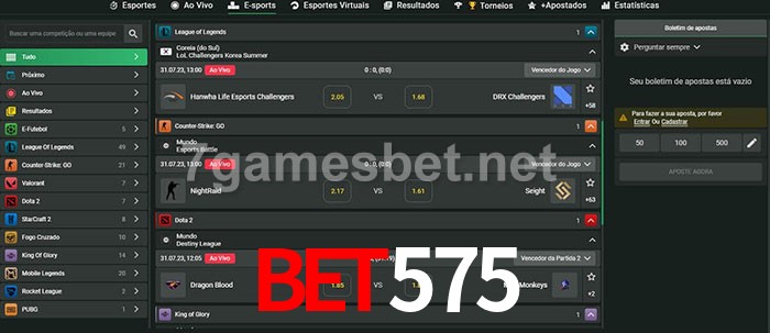A aposta Bet575 oferece aos jogadores a experiência mais conveniente de apostas em eSports!